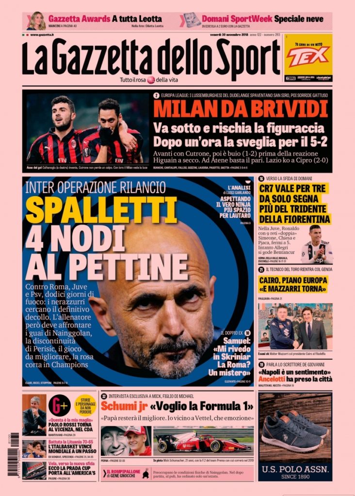 Queste le prime pagine dei principali quotidiani sportivi in edicola oggi