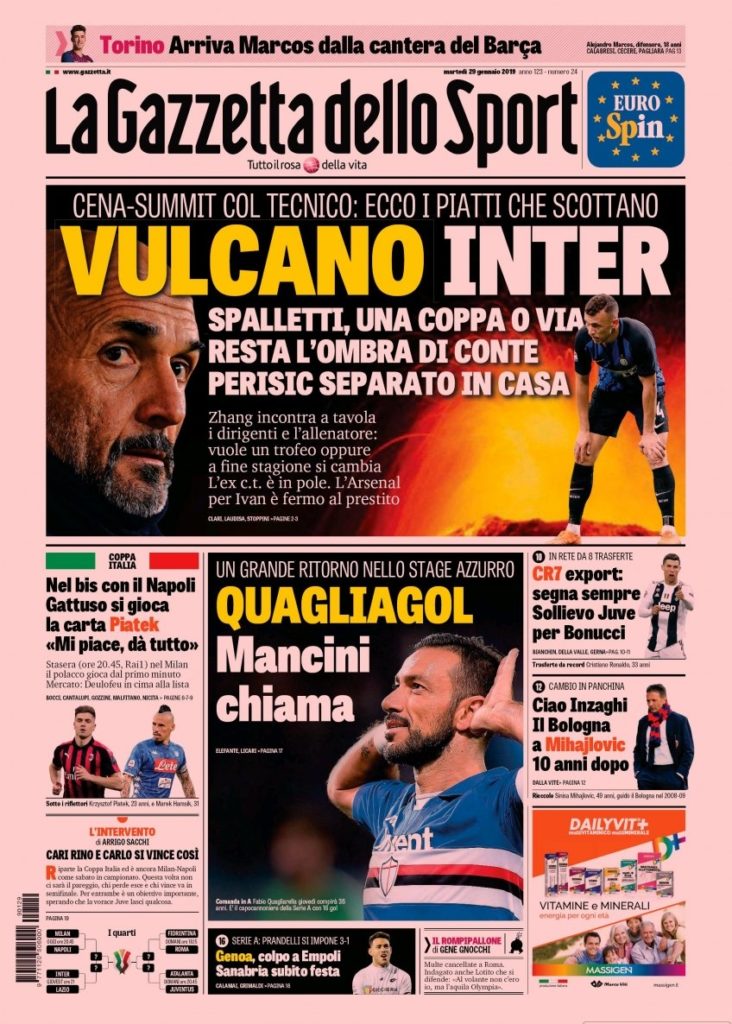Queste le prime pagine dei principali quotidiani sportivi in edicola oggi