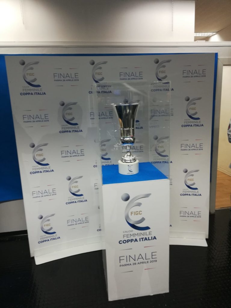 In esposizione l’ambito trofeo che sarĆ assegnato nella finalissima in programma il prossimo 28 aprile alle 12,30 allo stadio Tardini...