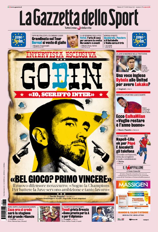 Queste le prime pagine dei principali quotidiani sportivi in edicola oggi