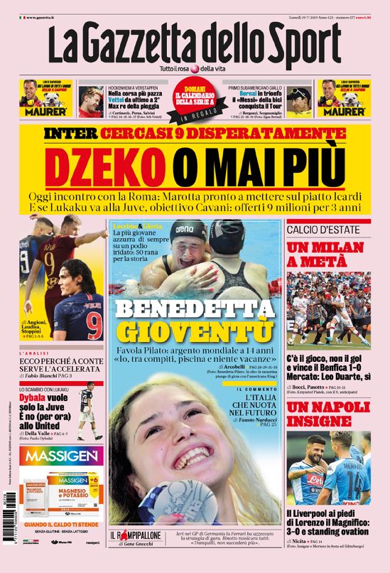 Queste le prime pagine dei principali quotidiani sportivi in edicola oggi