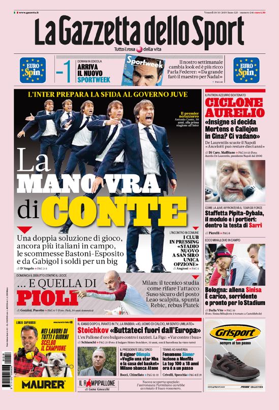 Queste le prime pagine dei principali quotidiani sportivi in edicola oggi
