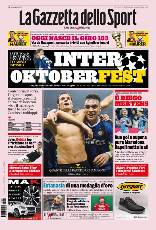 Queste le prime pagine dei principali quotidiani sportivi in edicola oggi
