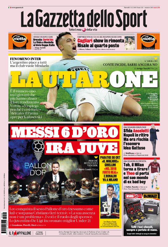 Queste le prime pagine dei principali quotidiani sportivi in edicola oggi