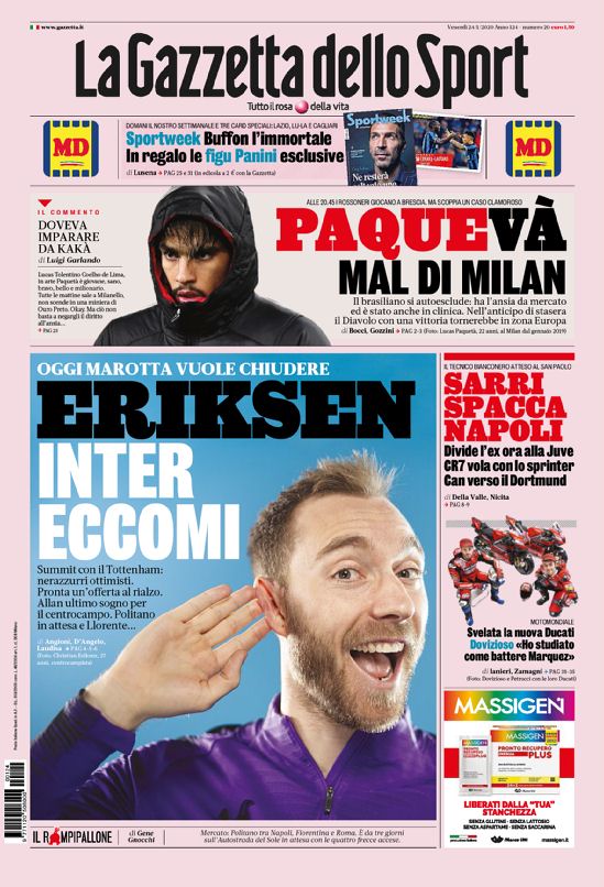 Queste le prime pagine dei principali quotidiani sportivi in edicola oggi