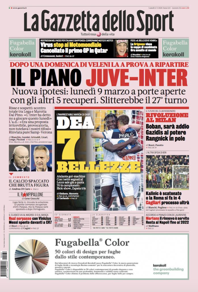 Recupero nel weekend delle partite di campionato rinviate, con Juve-Inter alle 20.45 di lunedì 9 marzo, e scivolamento delle altre...