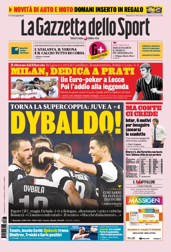 Queste le prime pagine dei principali quotidiani sportivi in edicola oggi