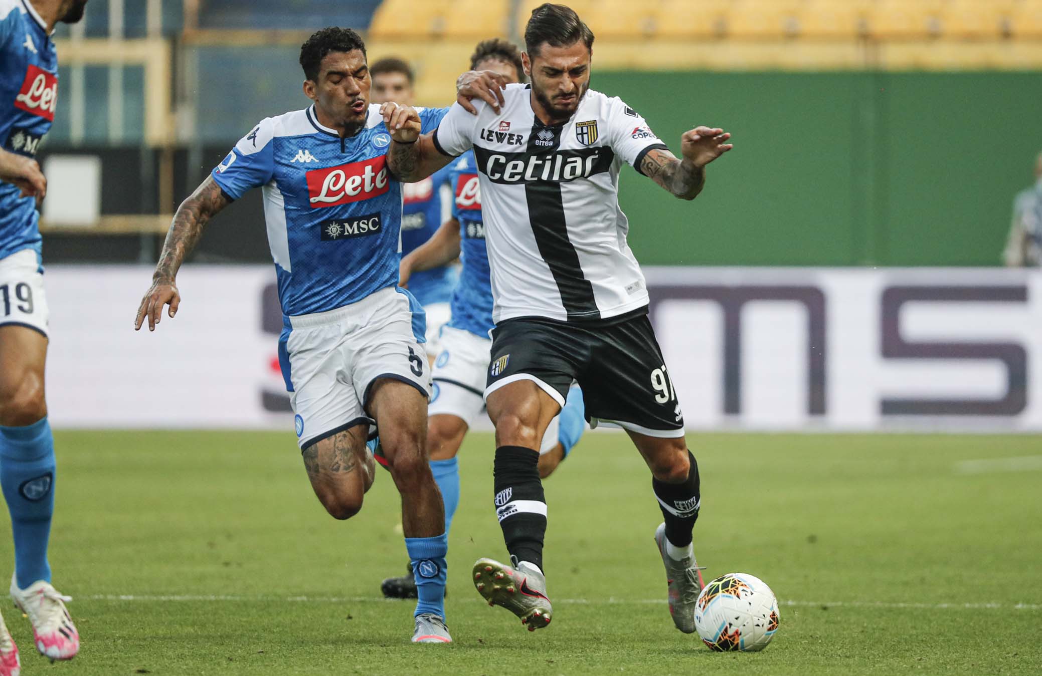 PARMA - ITALY, 22-07-20 - FOTO DI CASTALDI / SILPRESS, STADIO ENIO TARDINI - PARMA VS NAPOLI, NELLA FOTO: LUIGI SEPE (PARMA) E BRUNO ALVES (PARMA)