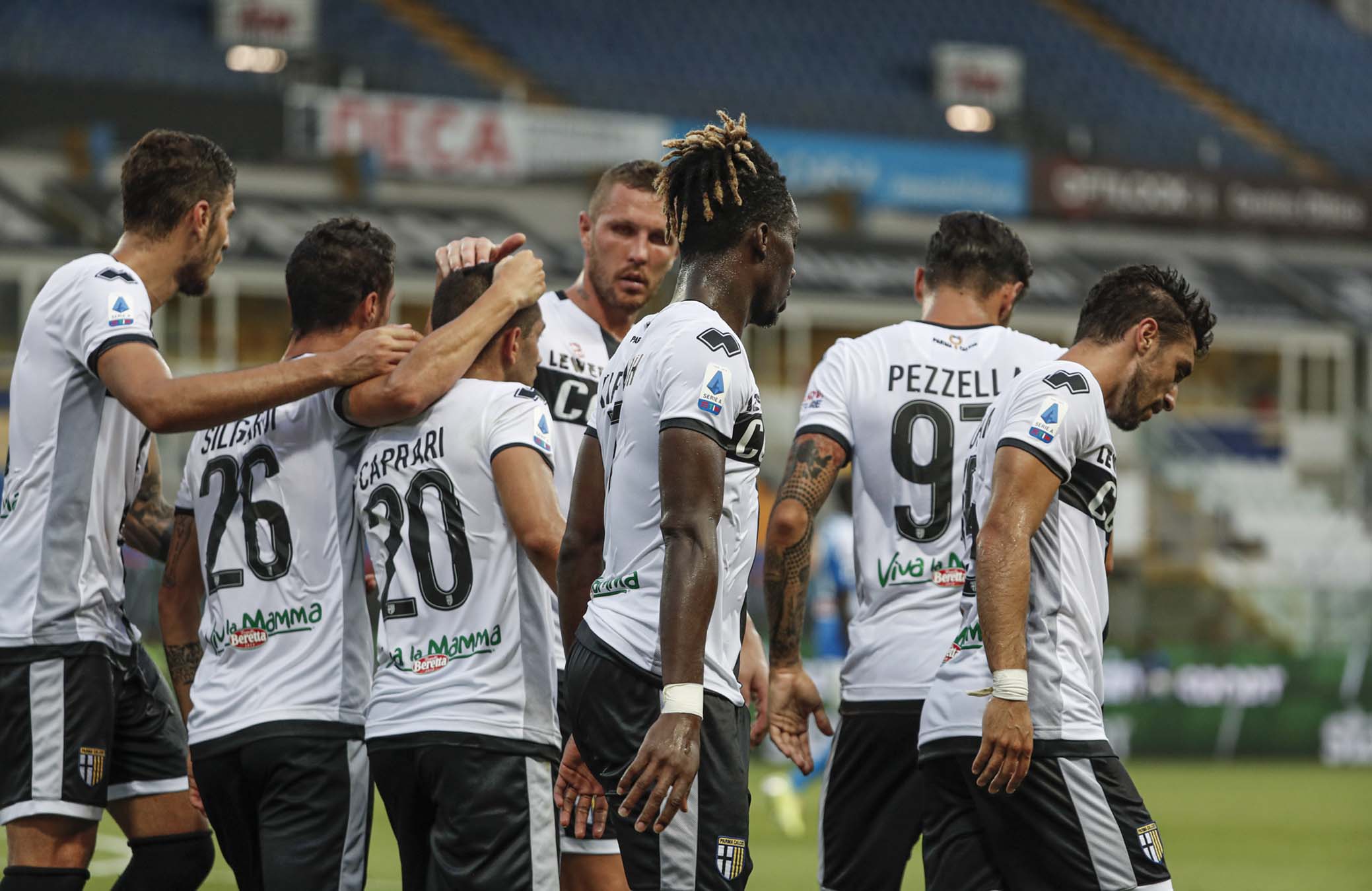 PARMA - ITALY, 22-07-20 - FOTO DI CASTALDI / SILPRESS, STADIO ENIO TARDINI - PARMA VS NAPOLI, NELLA FOTO: ESULTANZA DI GIANLUCA CAPRARI (PARMA)