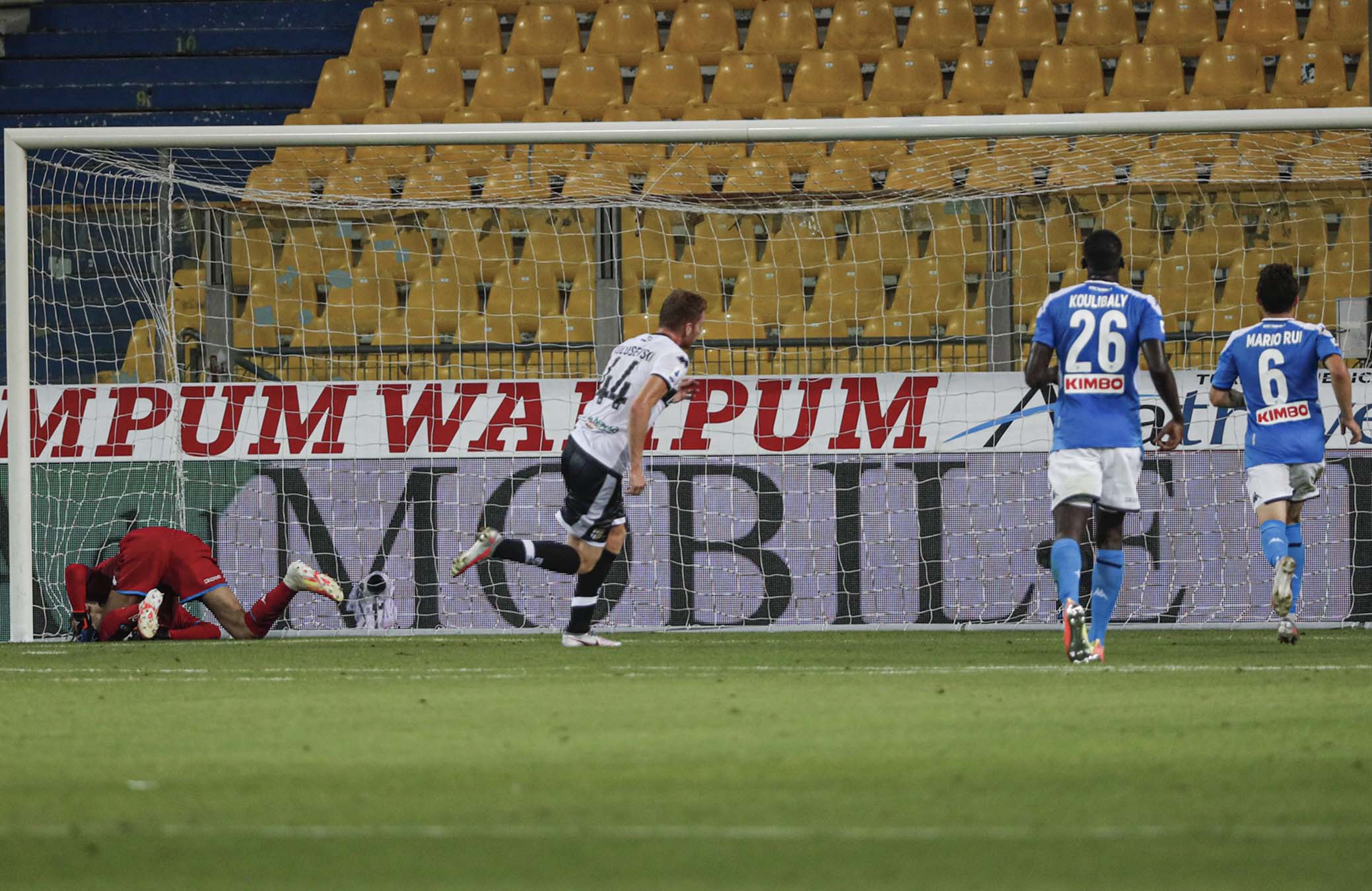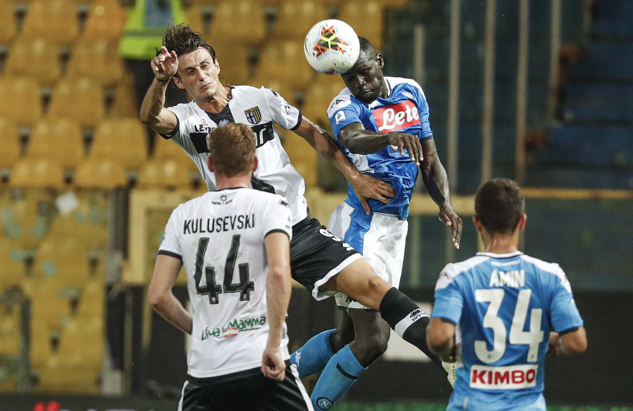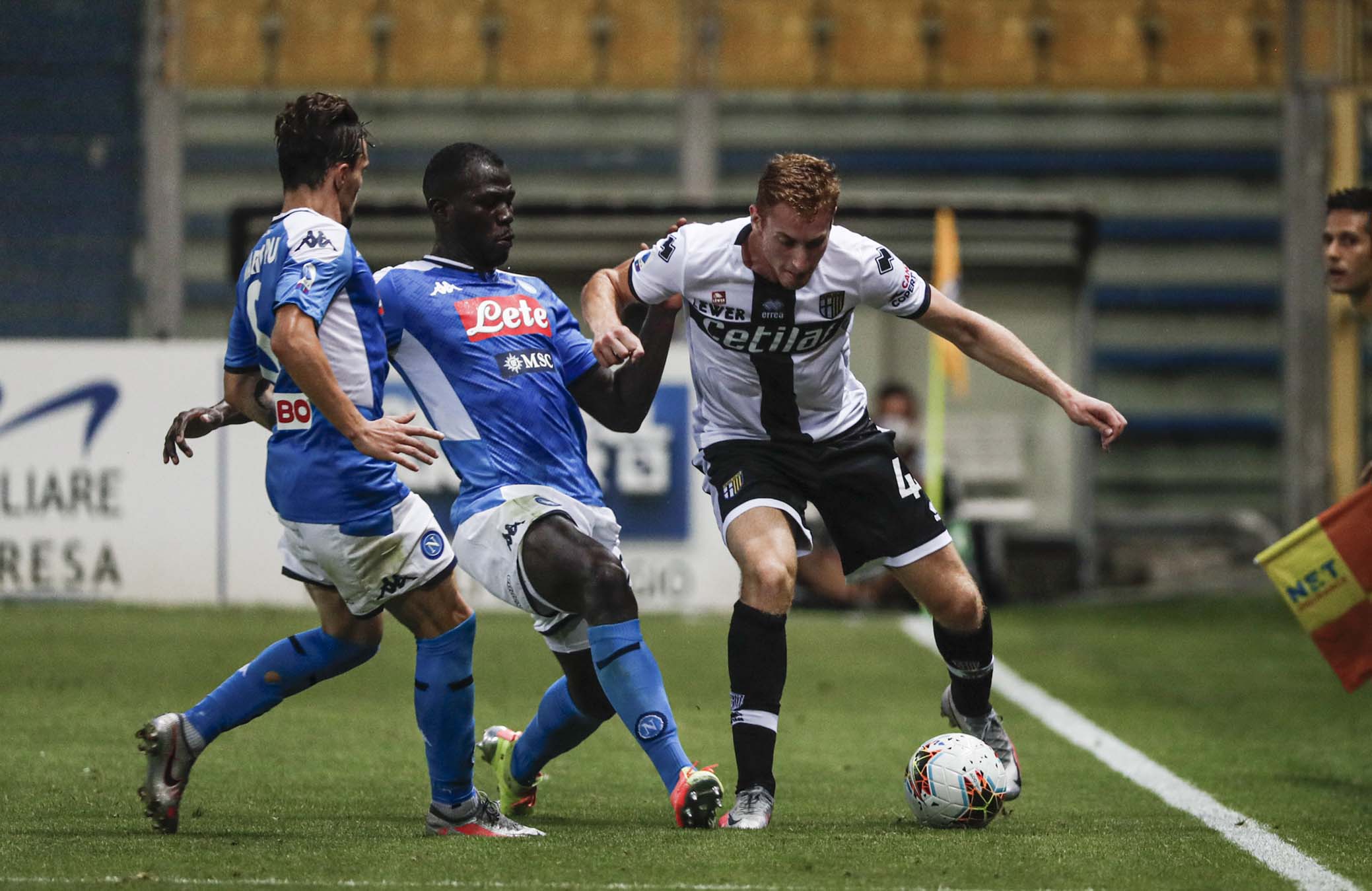PARMA - ITALY, 22-07-20 - FOTO DI CASTALDI / SILPRESS, STADIO ENIO TARDINI - PARMA VS NAPOLI, NELLA FOTO: YANN KARAMOH (PARMA) E NIKOLA MAKSIMOVIĆ (NAPOLI)