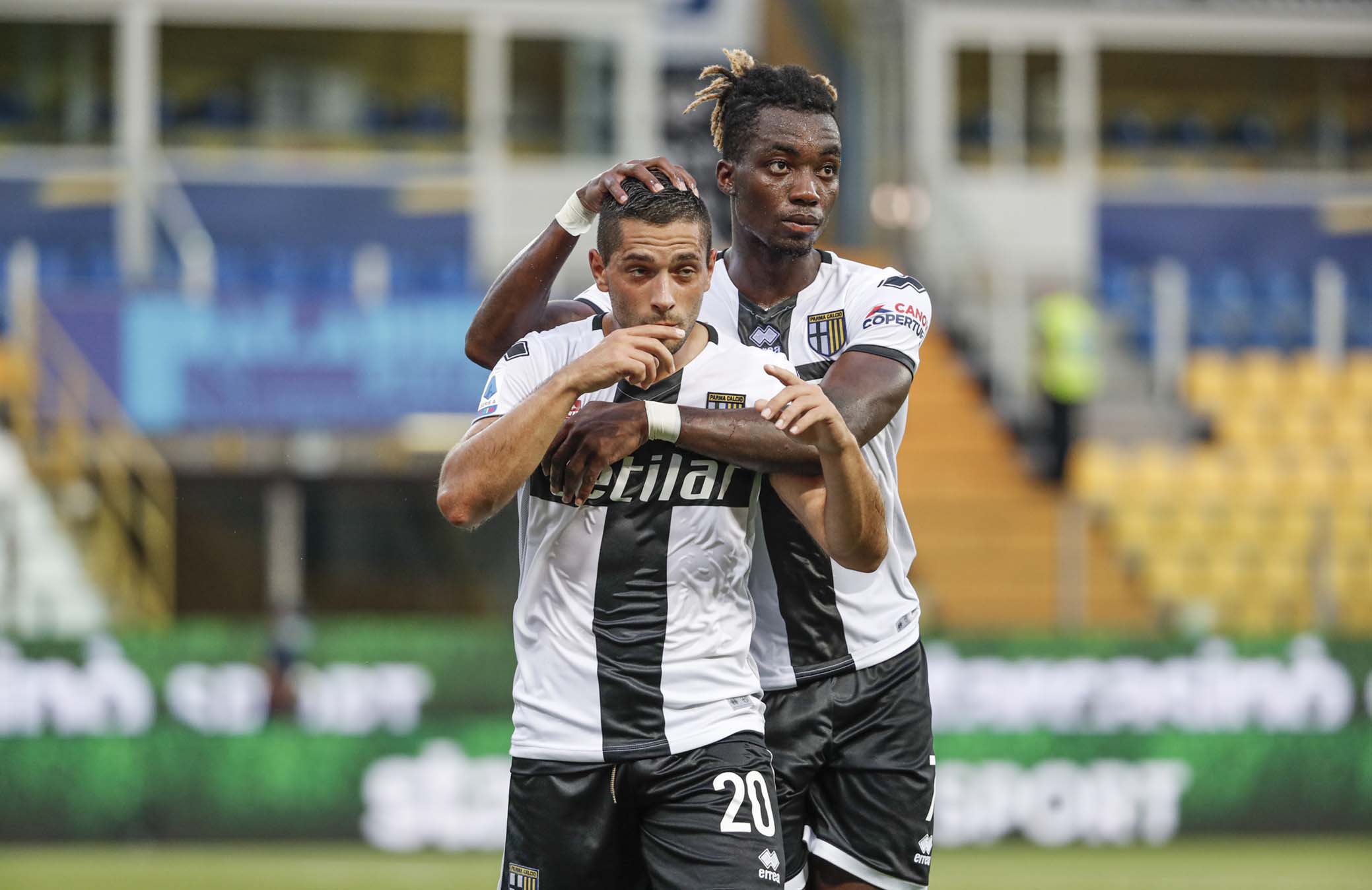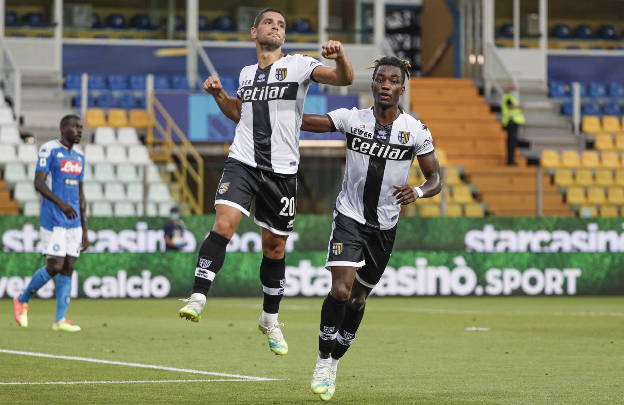 PARMA - ITALY, 22-07-20 - FOTO DI CASTALDI / SILPRESS, STADIO ENIO TARDINI - PARMA VS NAPOLI, NELLA FOTO: Jasmin Kurtic (PARMA) E YANN KARAMOH (PARMA)