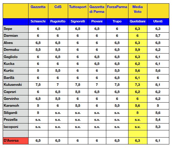 Un uomo solo al comando: il suo nome ĆØ Dejan Kulusevski. Il talento svedese non ha steccato neppure di fronte alla sua ex squadra, l’Atalanta, e il decimo gol in campionato (oltre al palo colpito sullo 0-0) suggella l’ennesima prestazione di spessore in una stagione da fenomeno. 7,3 e 8,1 la media voto assegnata rispettivamente da stampa e tifosi che gli consentono di precedere nettamente il quartetto formato da Sepe, Alves, Gagliolo e mister D’Aversa, appaiati a 6,3. Bene anche Caprari e Kucka, in scia a 6,2.