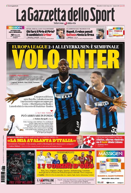 Le prime pagine dei quotidiani sportivi in edicola oggi, martedƬ 11 agosto 2020