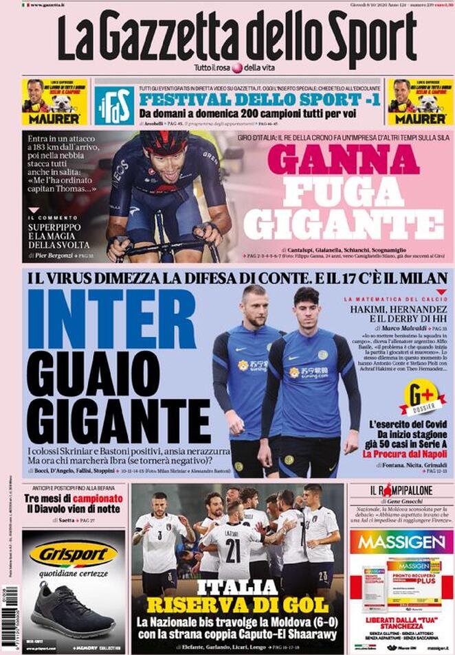 Queste le prime pagine dei principali quotidiani sportivi in edicola oggi