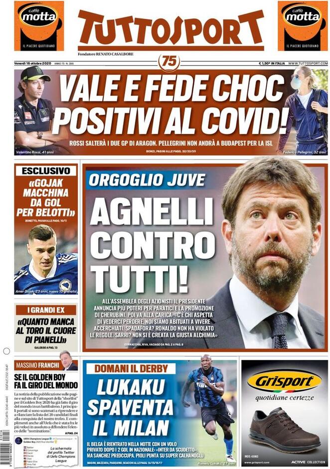 Queste le prime pagine dei principali quotidiani sportivi in edicola oggi