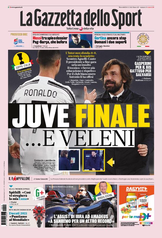 Le prime pagine dei quotidiani sportivi in edicola oggi, mercoledƬ 10 febbraio 2021.