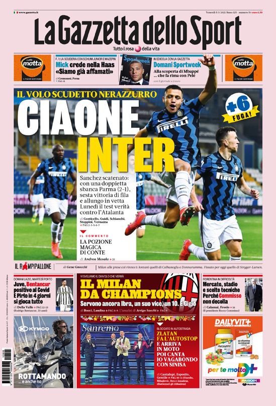 Le prime pagine dei quotidiani sportivi in edicola oggi, venerdƬ 5 marzo 2021.