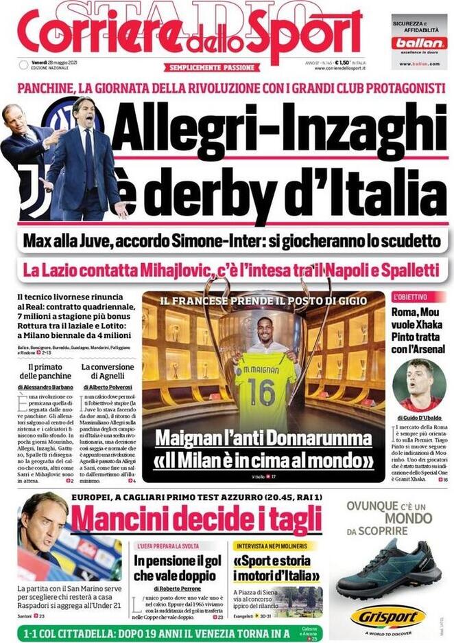 Queste le prime pagine dei principali quotidiani sportivi in edicola oggi