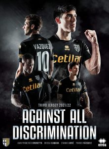 Per il lancio della terza maglia, l’evidente ispirazione è quella agli iconici manifesti cinematografici dei film hollywoodiani. I quattro calciatori rappresentati – Juan Francisco Brunetta, Drissa Camara, Stanco Jurić e Franco Vázquez – diventano, quindi, i protagonisti di questo ‘film’, supereroi pronti a combattere contro ogni forma di discriminazione dentro e fuori dal campo.