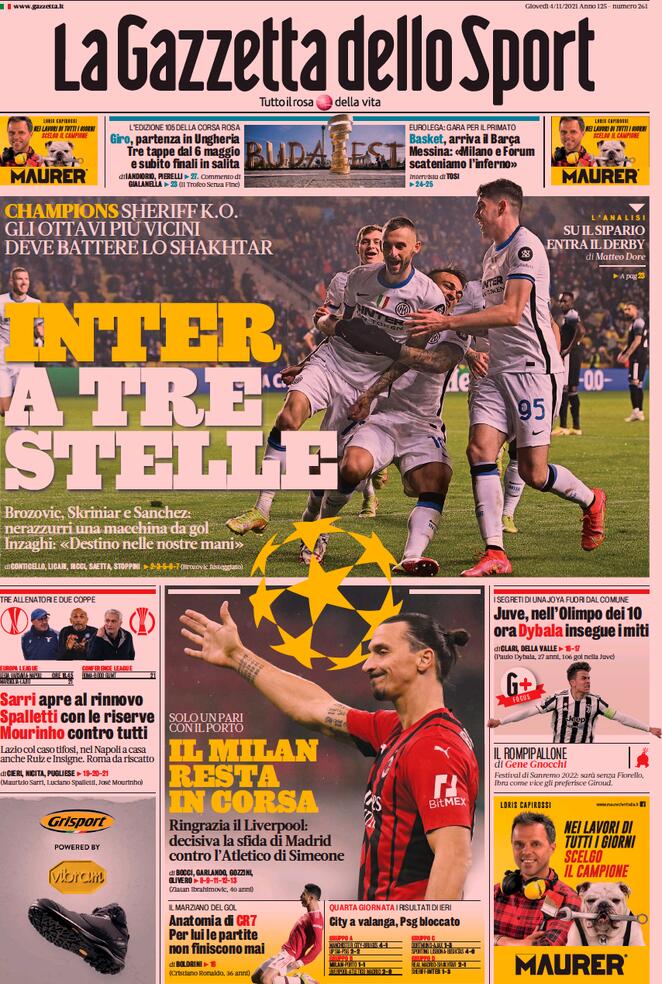 Queste le prime pagine dei principali quotidiani sportivi in edicola oggi