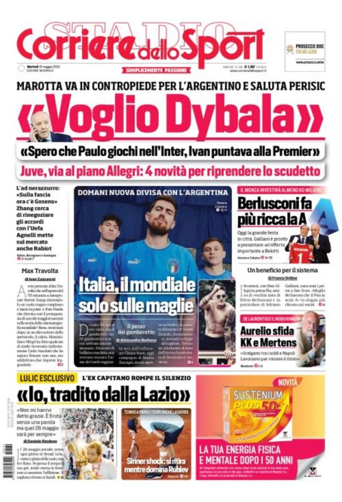 Queste le prime pagine dei principali quotidiani sportivi in edicola oggi