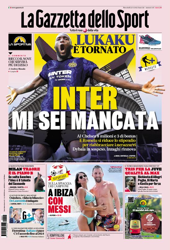 Le prime pagine dei quotidiani sportivi in edicola oggi, mercoledì 22 giugno 2022.