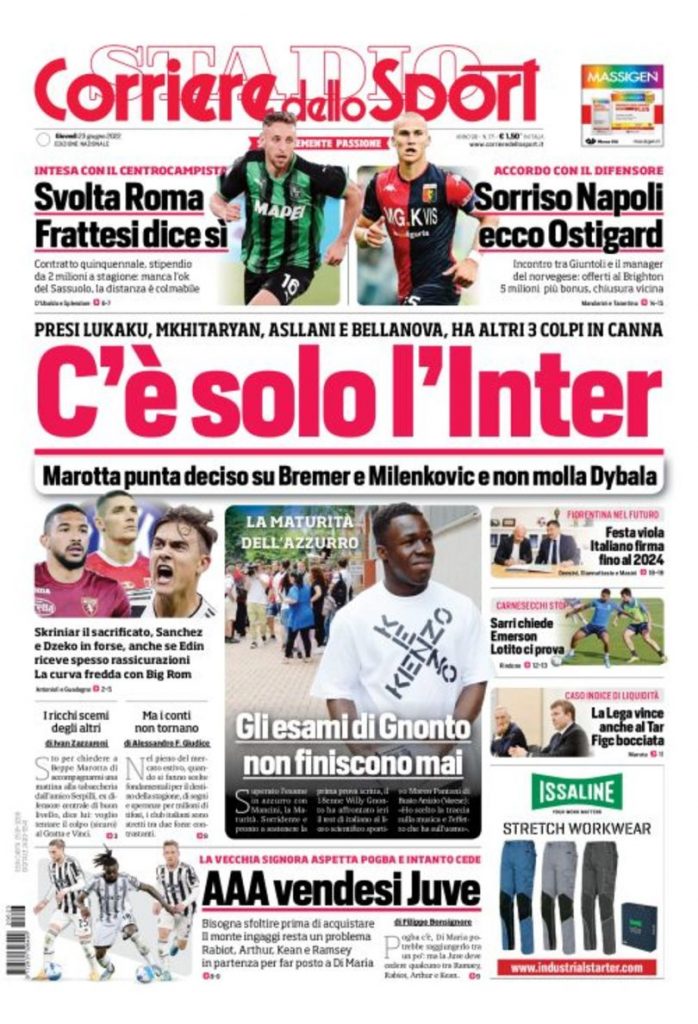 Queste le prime pagine dei principali quotidiani sportivi in edicola oggi