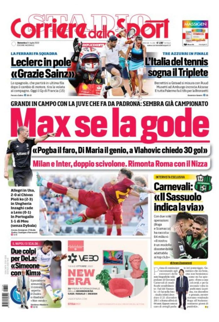 Queste le prime pagine dei principali quotidiani sportivi in edicola oggi