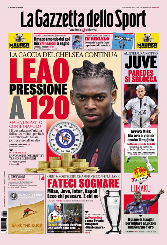 Queste le prime pagine dei principali quotidiani sportivi in edicola oggi