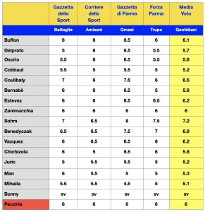 Sono d’accordo con Grossi però Pecchia non si merita la sufficienza e darei anche 0.5 punti in meno a Juric e Bernabè.