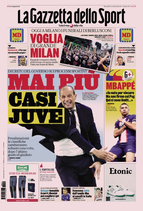 Queste le prime pagine dei principali quotidiani sportivi in edicola oggi
