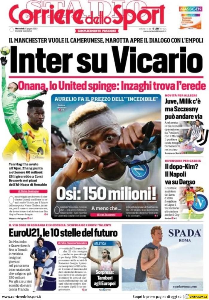 Queste le prime pagine dei principali quotidiani sportivi in edicola oggi