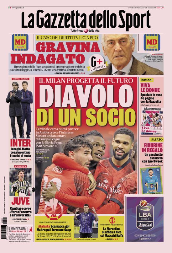 Queste le prime pagine dei principali quotidiani sportivi in edicola oggi...