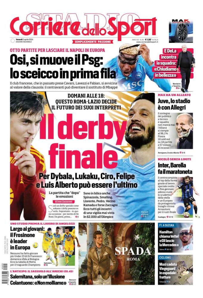 Queste le prime pagine dei principali quotidiani sportivi in edicola oggi