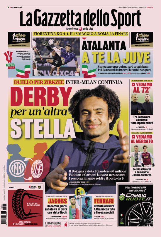 Queste le prime pagine dei principali quotidiani sportivi in edicola oggi...