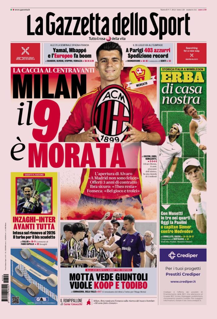 Queste le prime pagine dei principali quotidiani sportivi in edicola oggi...