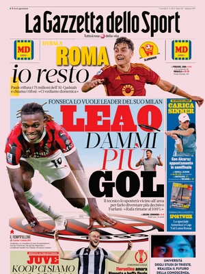Le prime pagine dei quotidiani sportivi in edicola oggi, venerdƬ 23 agosto 2024.