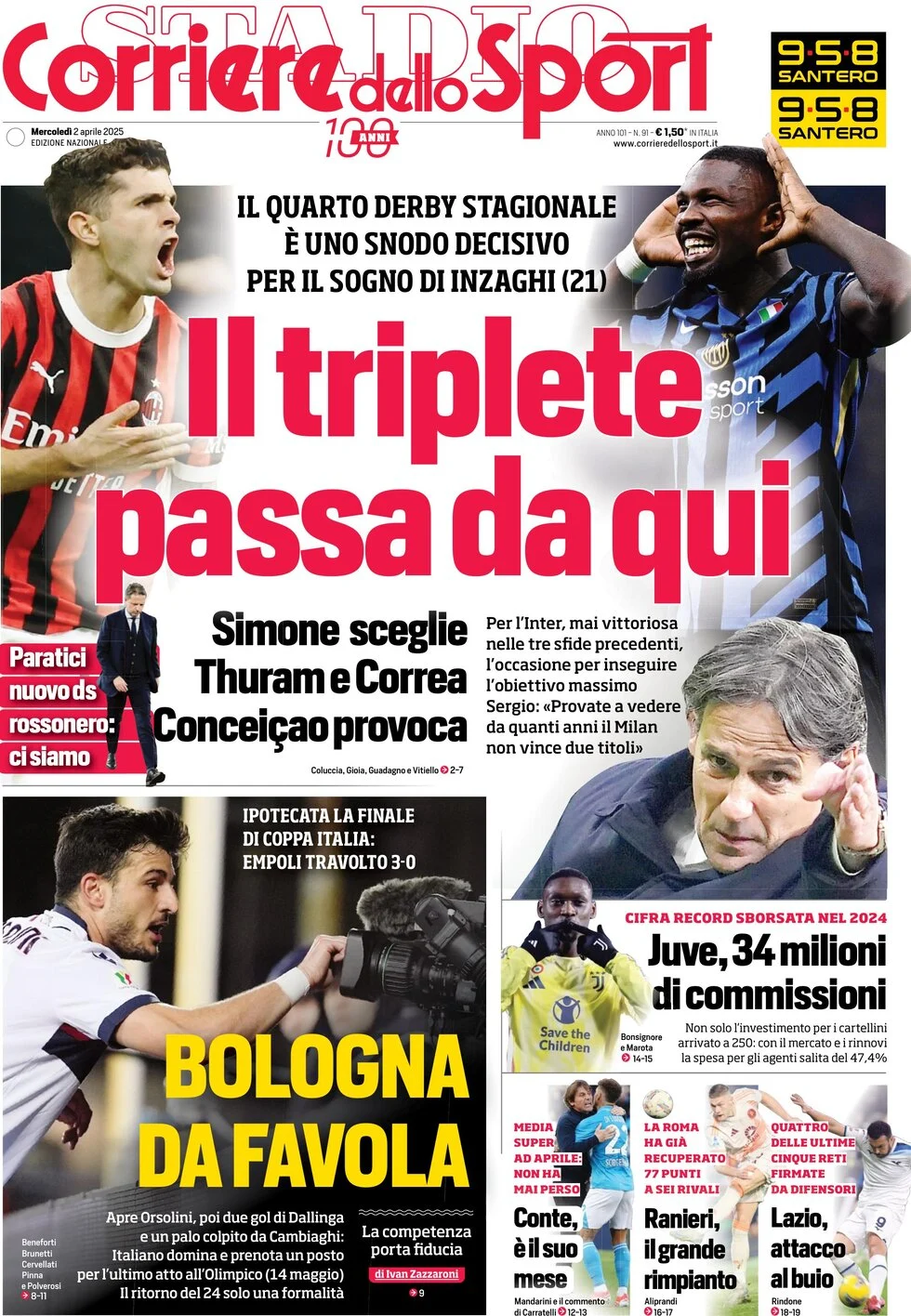 Le prime pagine dei quotidiani sportivi