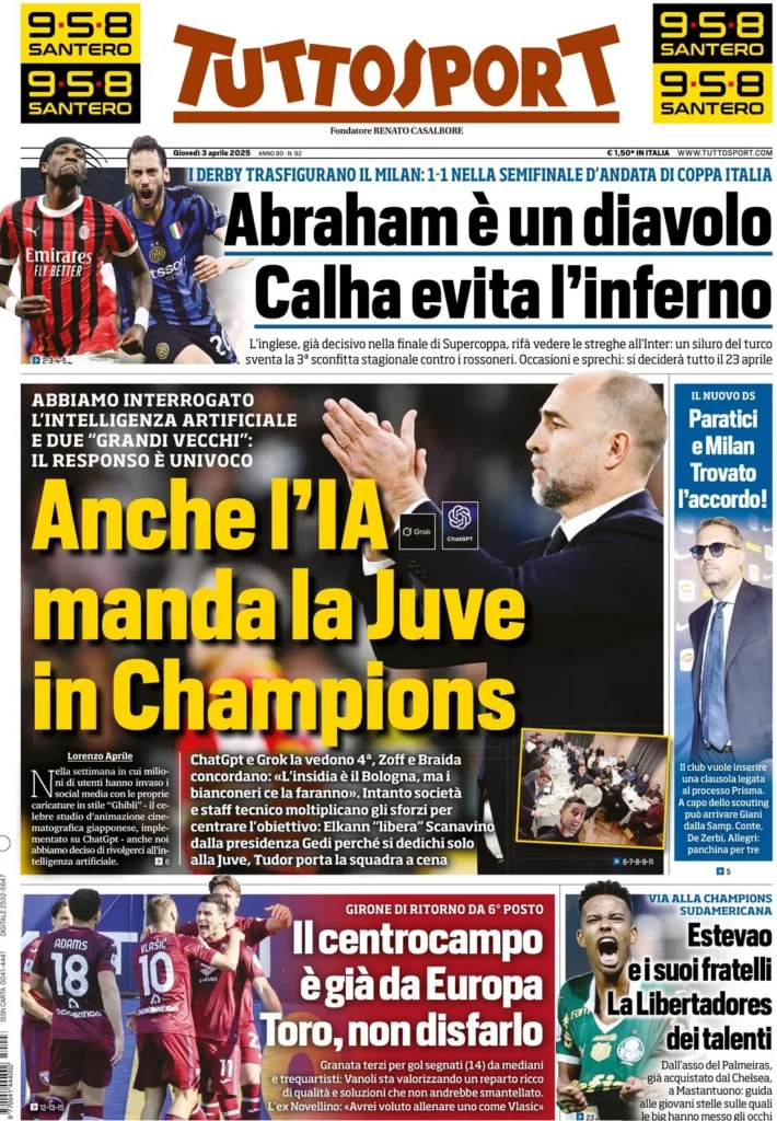 Queste le prime pagine dei quotidiani sportivi in edicola...