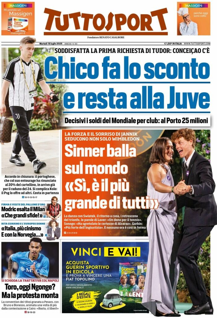 Queste le prime pagine dei quotidiani sportivi in edicola oggi...