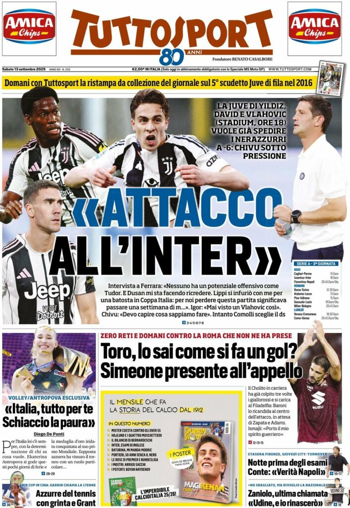 Queste le prime pagine dei quotidiani sportivi in edicola oggi...
