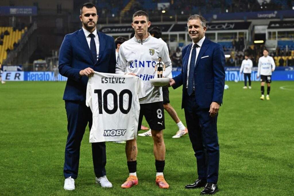Maglia celebrativa per l'argentino prima di Parma-Bologna...
