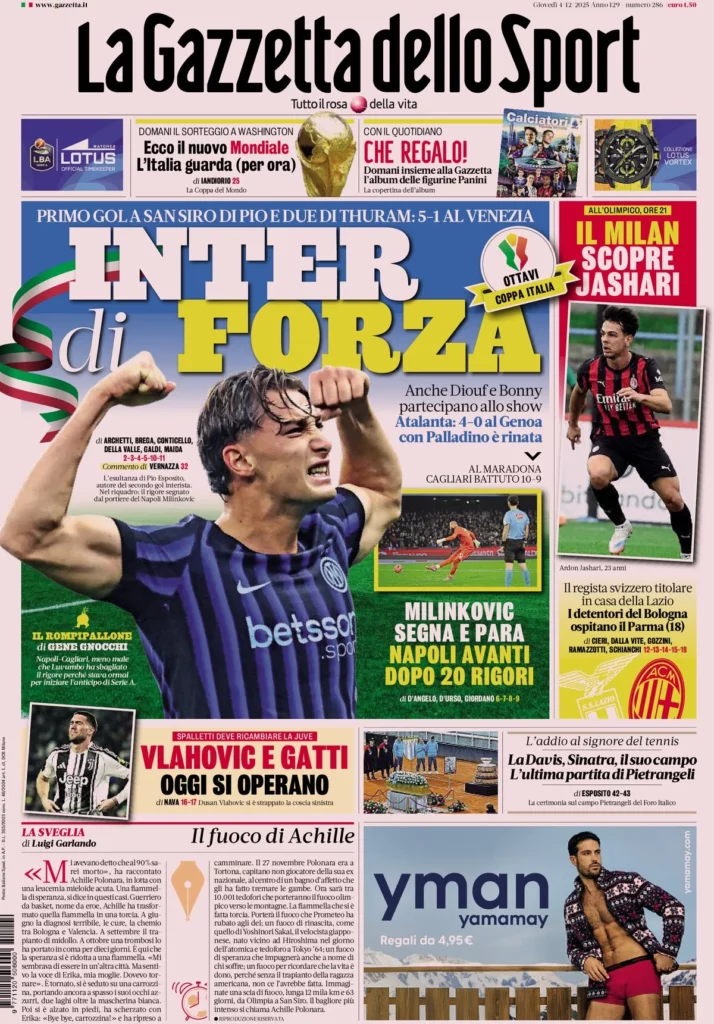 Ecco le prime pagine dei quotidiani sportivi in edicola oggi...