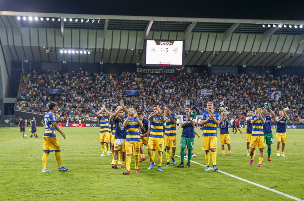Il Parma aggancia per ora il Milan in classifica con Gagliolo e Kulusevski che portano in avanti i crociati. 2-0...